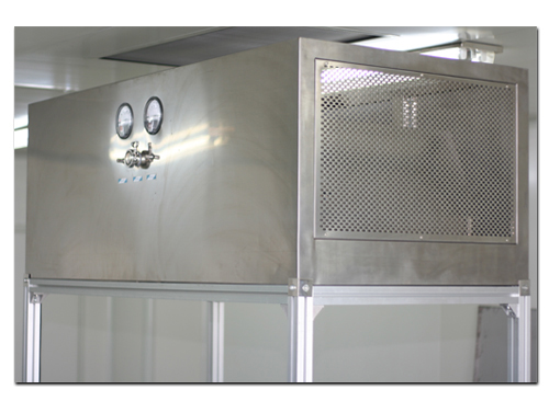 A级层流罩上安装了PAO发尘口、PAO采样口,通过烟雾测试,可对每台过滤器进行现场验证。层流罩上装了压差表(量程0~500Pa)实时监控高效过滤器的运行状态。采用了液槽密封高效,确保无泄漏。通过液晶触摸屏/变频器可实现启、停风机及对风机进行调速。