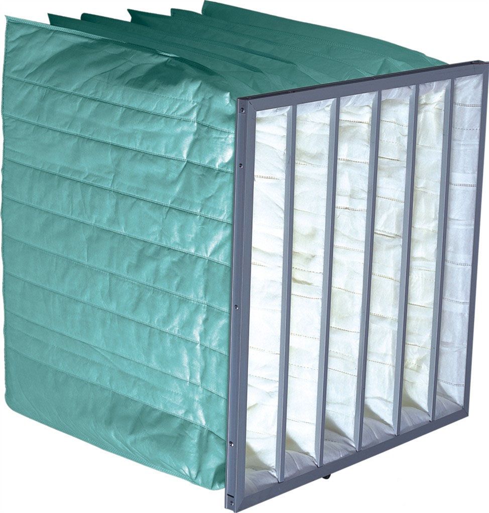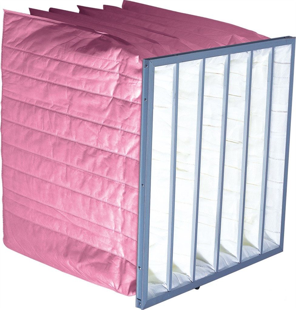 超声波无缝隙密合,将袋子三面密合,确保过滤器在恶劣的环境中不至于破损,每一个滤袋配一副加强筋,将袋子分成均匀横向的气流通道,使袋子可以最大限度膨胀,从而使气流可以均匀的通过,大大提高了滤袋的使用面积,增大了过滤器的容尘量,也降低了过滤器的压力。